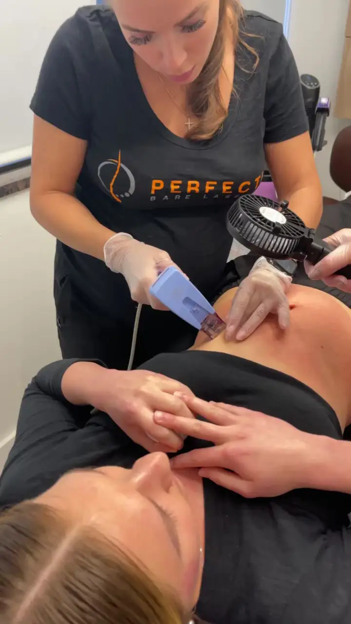 lma ClearLift is a versatile laser treatment offered at Perfectly Bare Laser in Tampa, designed to safely rejuvenate multiple areas of the face and body. Common treatment zones include the forehead, under-eye area, cheeks, jawline, neck, and décolleté—especially areas where skin tends to thin or wrinkle more easily. ClearLift is also ideal for sensitive regions that traditional lasers may not safely treat, making it a popular option for non-surgical neck lifts and tightening loose skin along the jowls. Its gentle, non-ablative technology allows for collagen stimulation in hard-to-treat areas, helping restore firmness, even tone, and youthful texture without downtime. Whether you’re targeting early signs of aging or looking to maintain a refreshed appearance, Alma ClearLift is a go-to solution at Tampa’s trusted MedSpa, Perfectly Bare Laser.